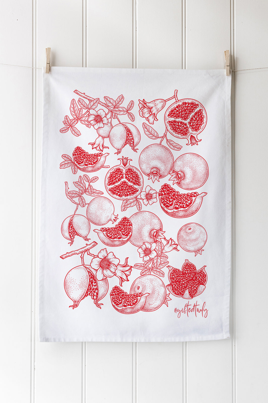 Unique to our brand, these 100% Cotton Tea Towels are designed and printed in Australia. The design is inspired by fresh pomegranates.