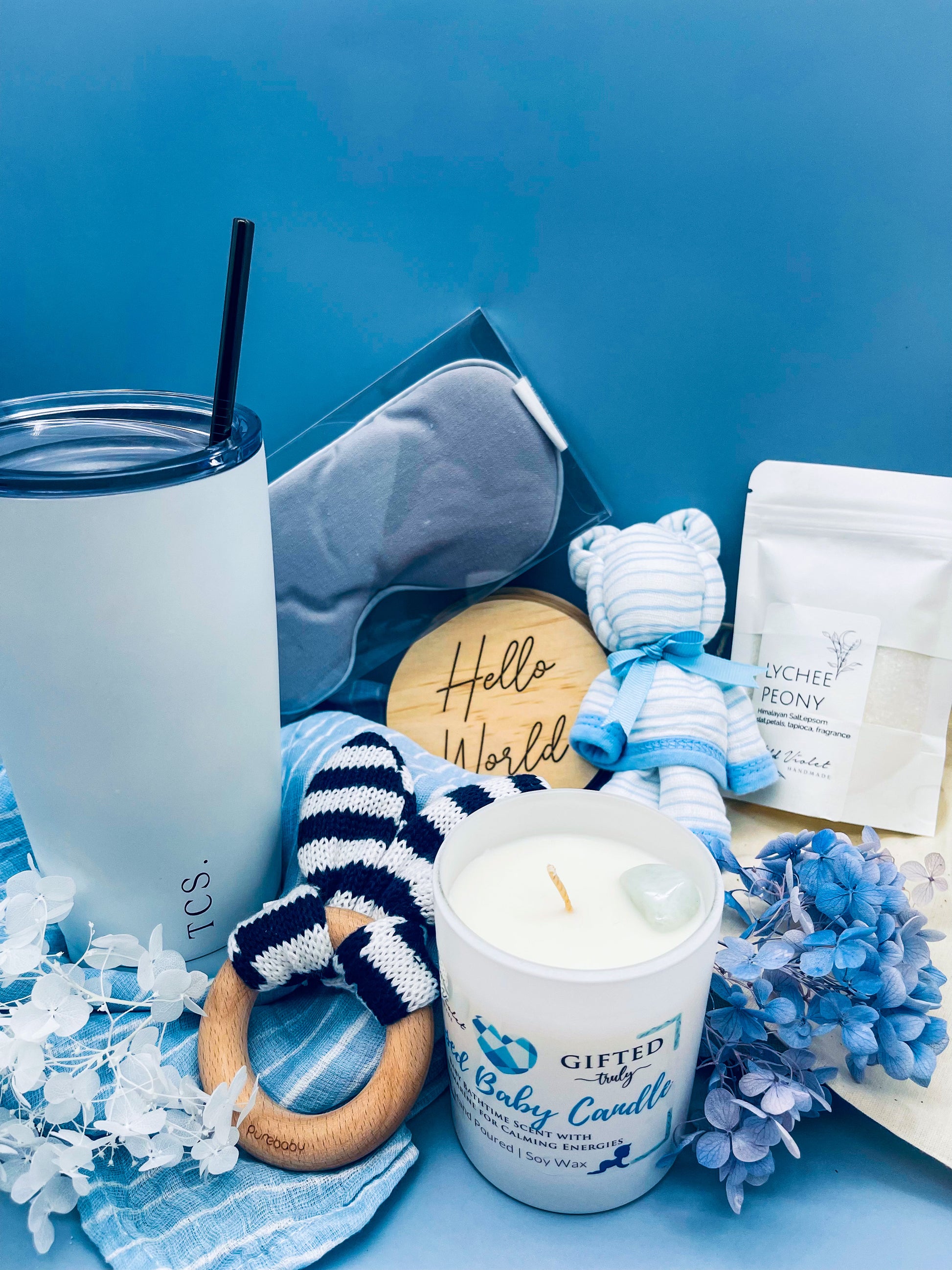 A thoughtful selection of products, the Baby Shower box includes helpful items for Mum & Bub for pre-birth & the first year, presented in a reusable gift box beautifully decorated with matching colour ribbon & dried flowers.
