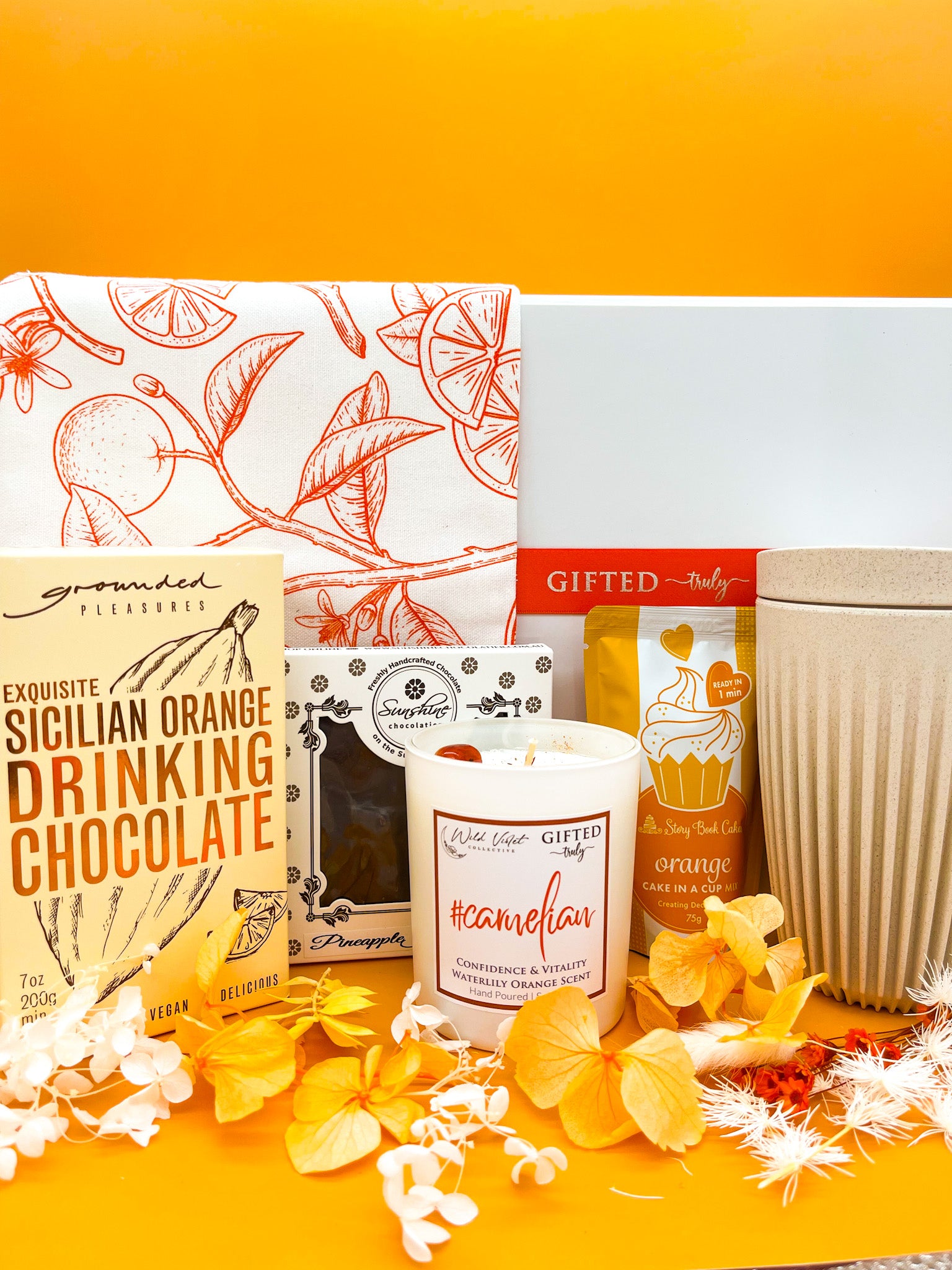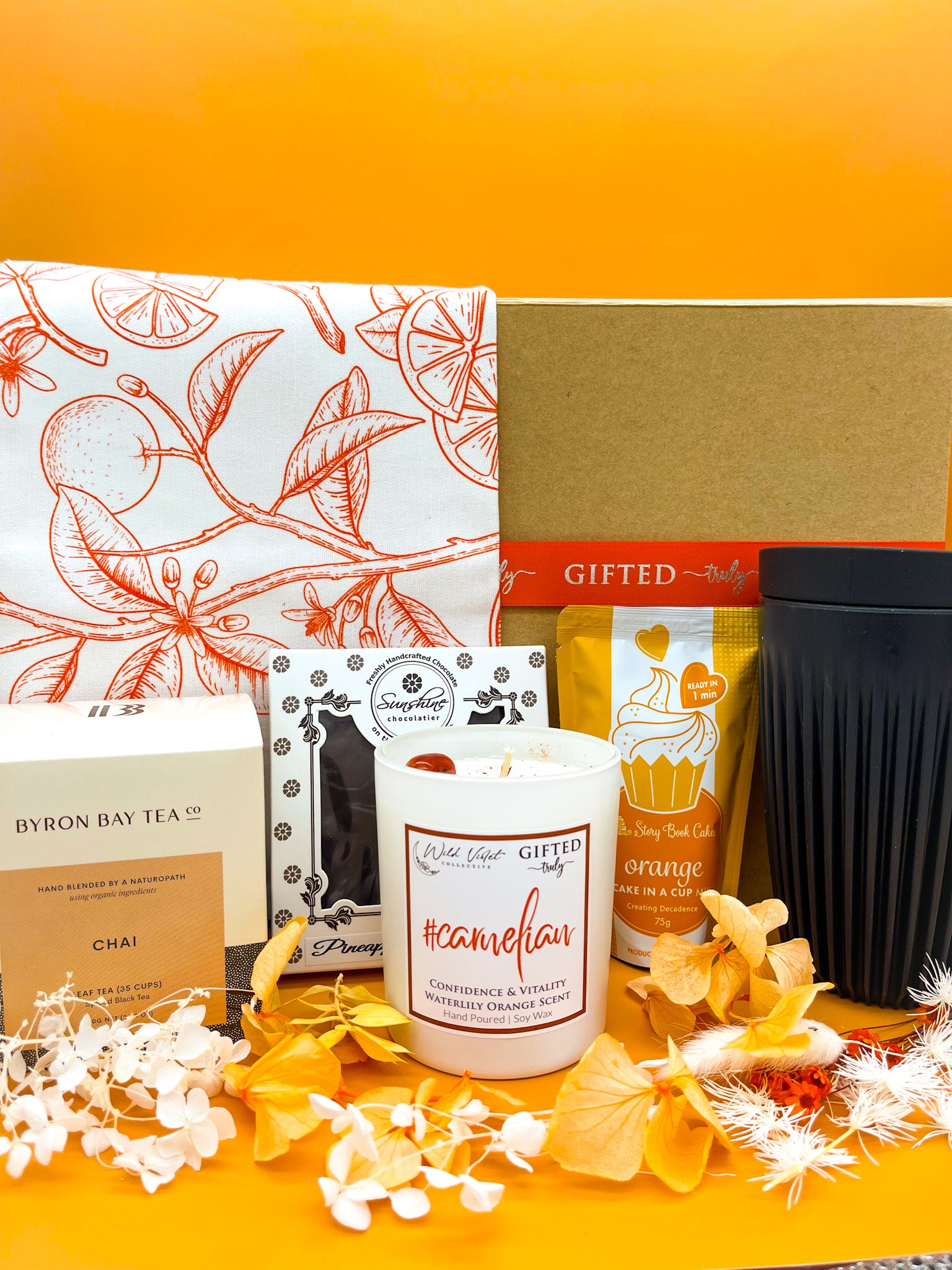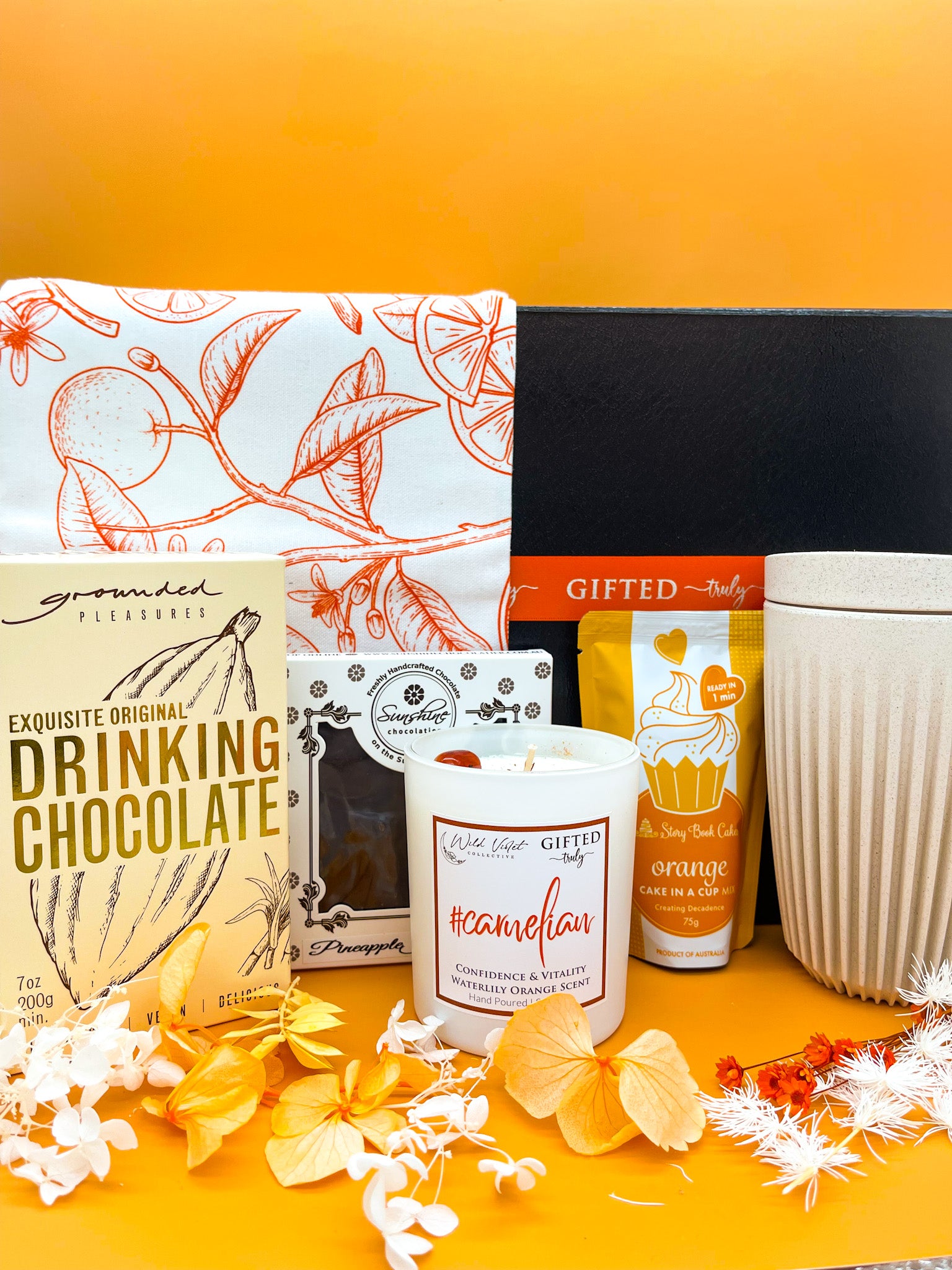 Similar to our Homely Hamper, this housewarming or real estate settlement gift has a nice mix of eco-friendly kitchen items, a hand poured candle, a warm drink & some chocolate but replaces the Hamper's bath products for cake because let's be honest.. who doesn't love cake?!